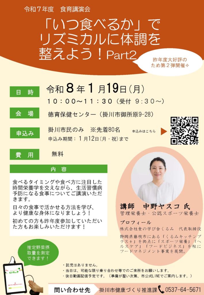 食育講演会「いつ食べるか」でリズミカルに体調を整えよう!Part2【令和7年度・掛川市主催】_2026/01/19