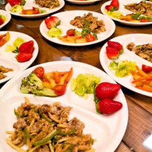 • 食事後には、メニューについての説明と「ミニ栄養セミナー」で「学ぶ」食トレを行いました。