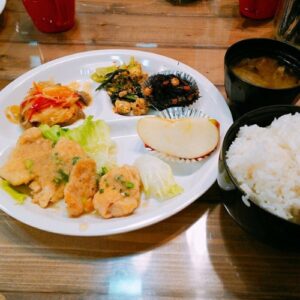 • 副菜:豚レバー南蛮漬け / ひじきと大豆の煮物 / 小松菜とツナの卵炒め