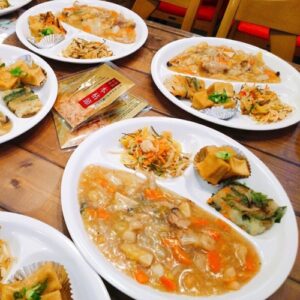 • 副菜:ニラとじゃがいものチヂミ / 切干大根と打ち豆のサラダ / 揚げだし高野豆腐