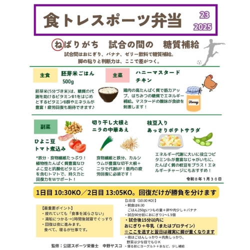 - 選手のみならず、指導者、保護者へテーマに沿った「栄養情報」を週1回配信し「学ぶ」食トレも実施します。