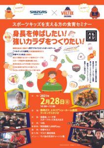 2月28日(日) 「スポーツキッズを支える方の食育セミナー:第1回 身長を伸ばしたい!強いカラダをつくりたい!」